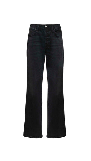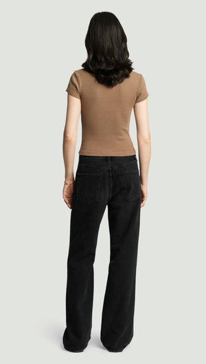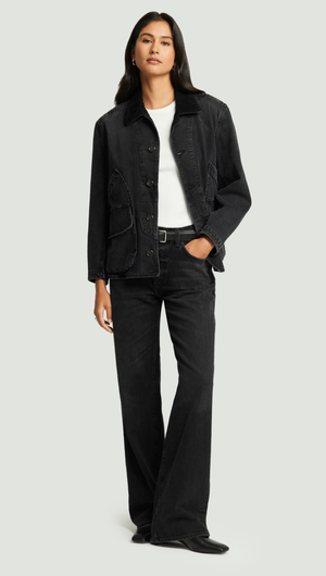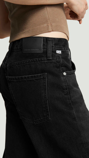 With a high rise and full-length 33" inseam, the ‘Annina’ jean delivers a clean, elongated silhouette. The ‘Raine’ wash—a softly worn black with subtle fading and marbling—is cut from rigid regenerative cotton with a soft, broken-in hand. Style with tonal knits or sharp shirting for a modern, minimal look.
