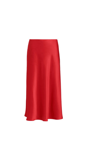Bias Midi Skirt in Silk Charmeuse | Ruby Red