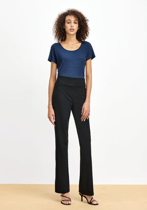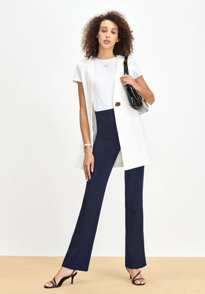 High&Elastic Waist: Pull-on pants with high rise make the ponte pants more formal. Wide waist with flared pants design provides perfect contouring of your curves and tummy control.