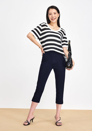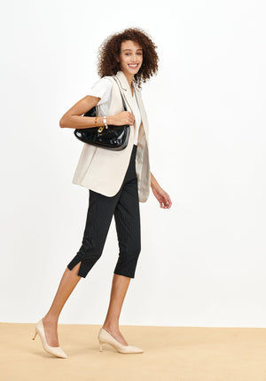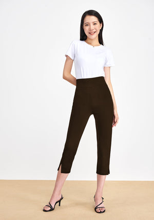 STRAIGHT LEG CAPRI: These capri stretch work pants fit through hip and thigh, and straight from the knee down. Cuffed pants with slit details on both legs, and a curvy-fit over your sleek shape make you elegant.