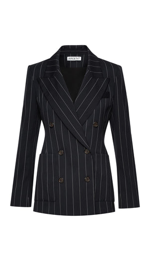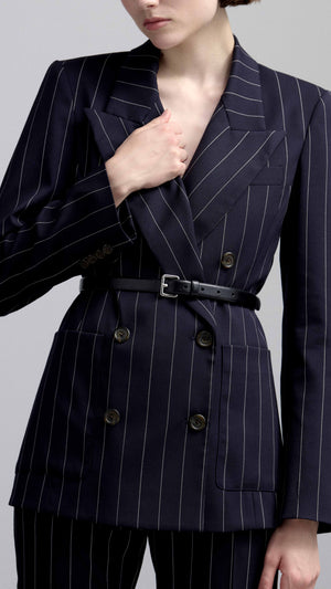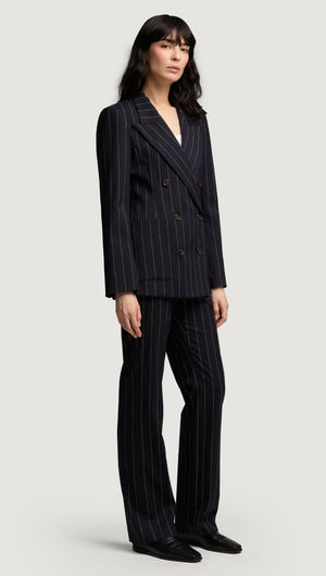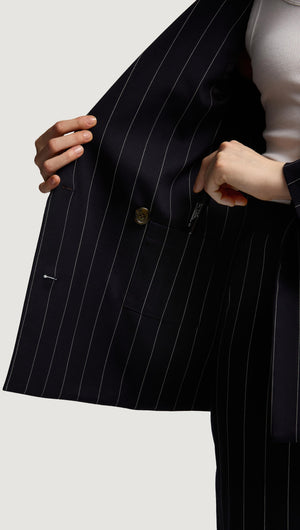 Chelsea Blazer in Stretch Wool | Navy Pinstripe