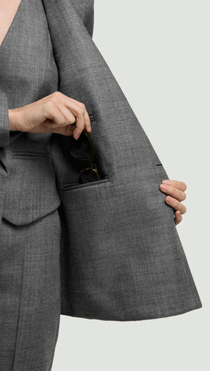 Chelsea Blazer in Textured Wool Twill | Grey Melange