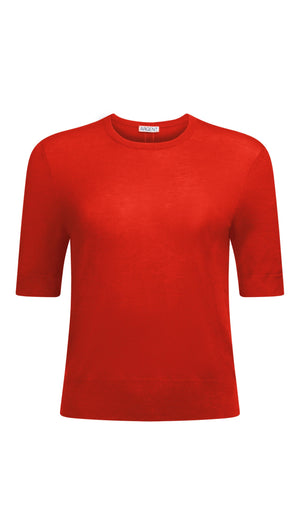 Fine Shortsleeve Knit in Wool Silk | Tomato