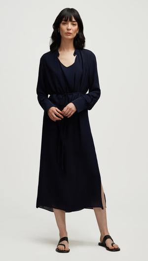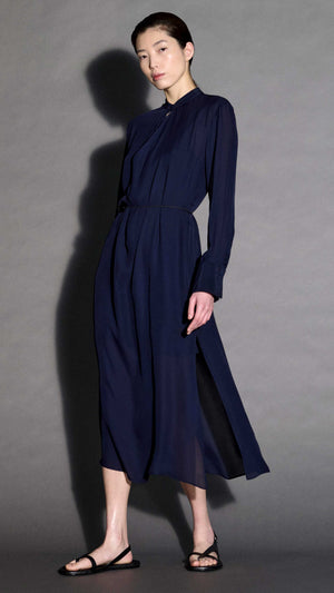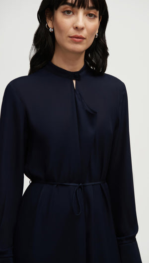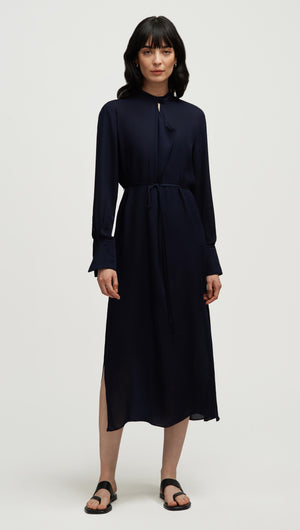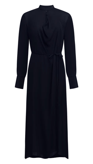 Longsleeve Cowl Neck Dress in Silk | Midnight