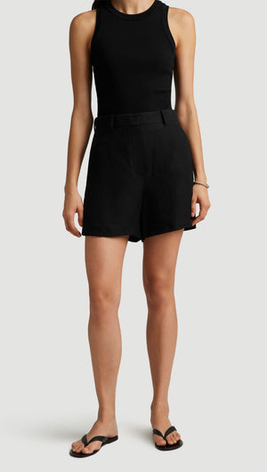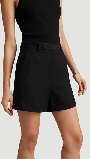 Mini Tailored Shorts in Viscose Linen Twill | Black