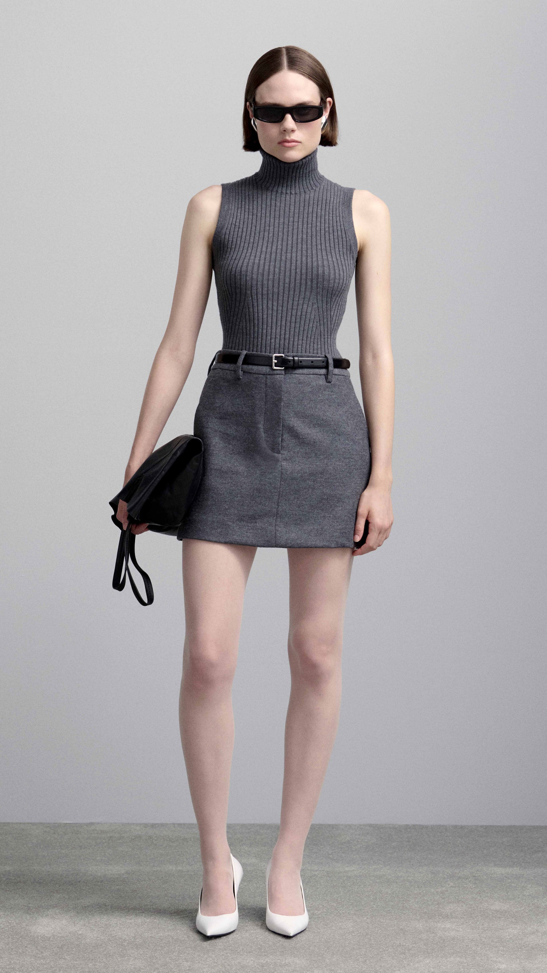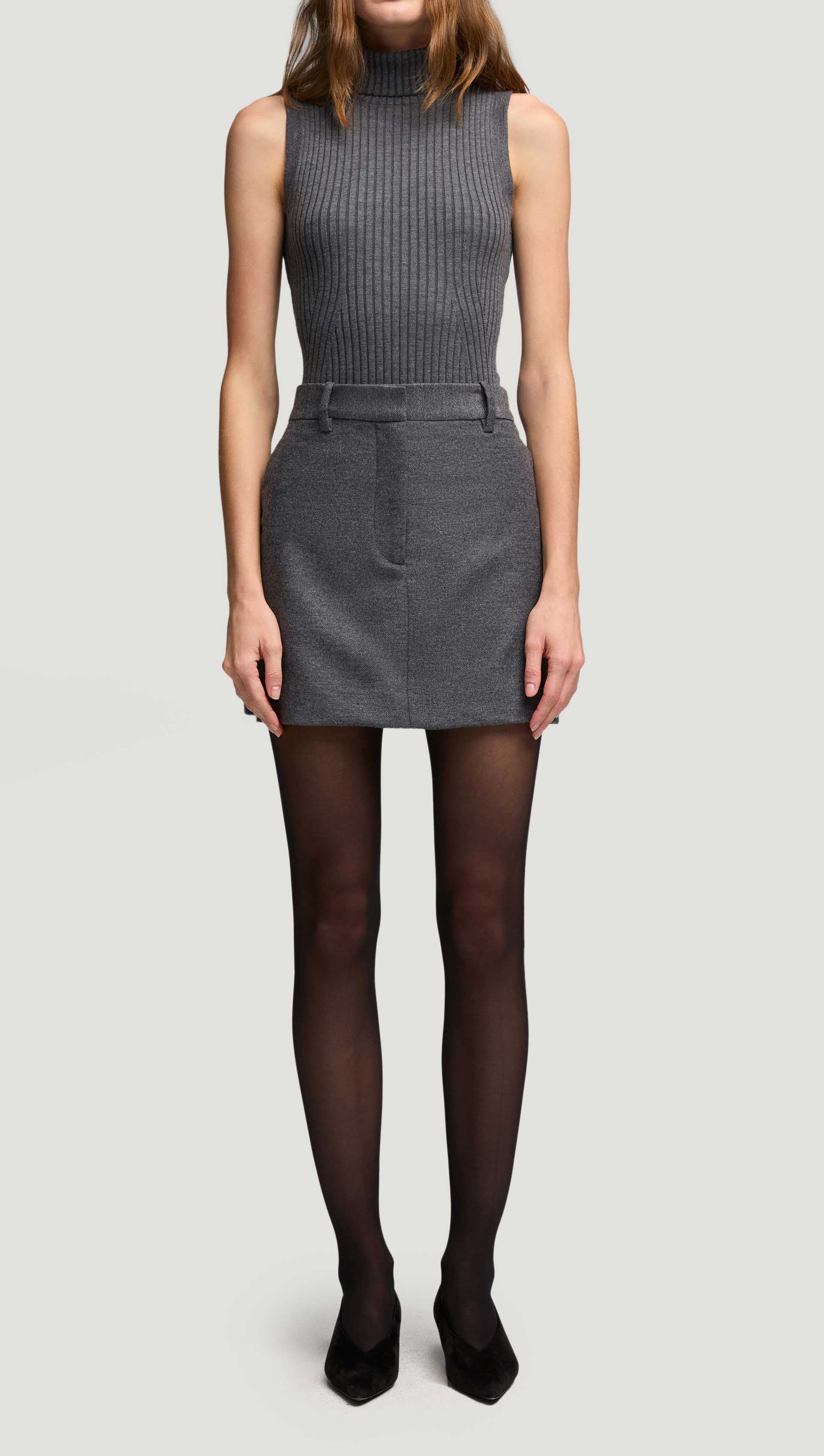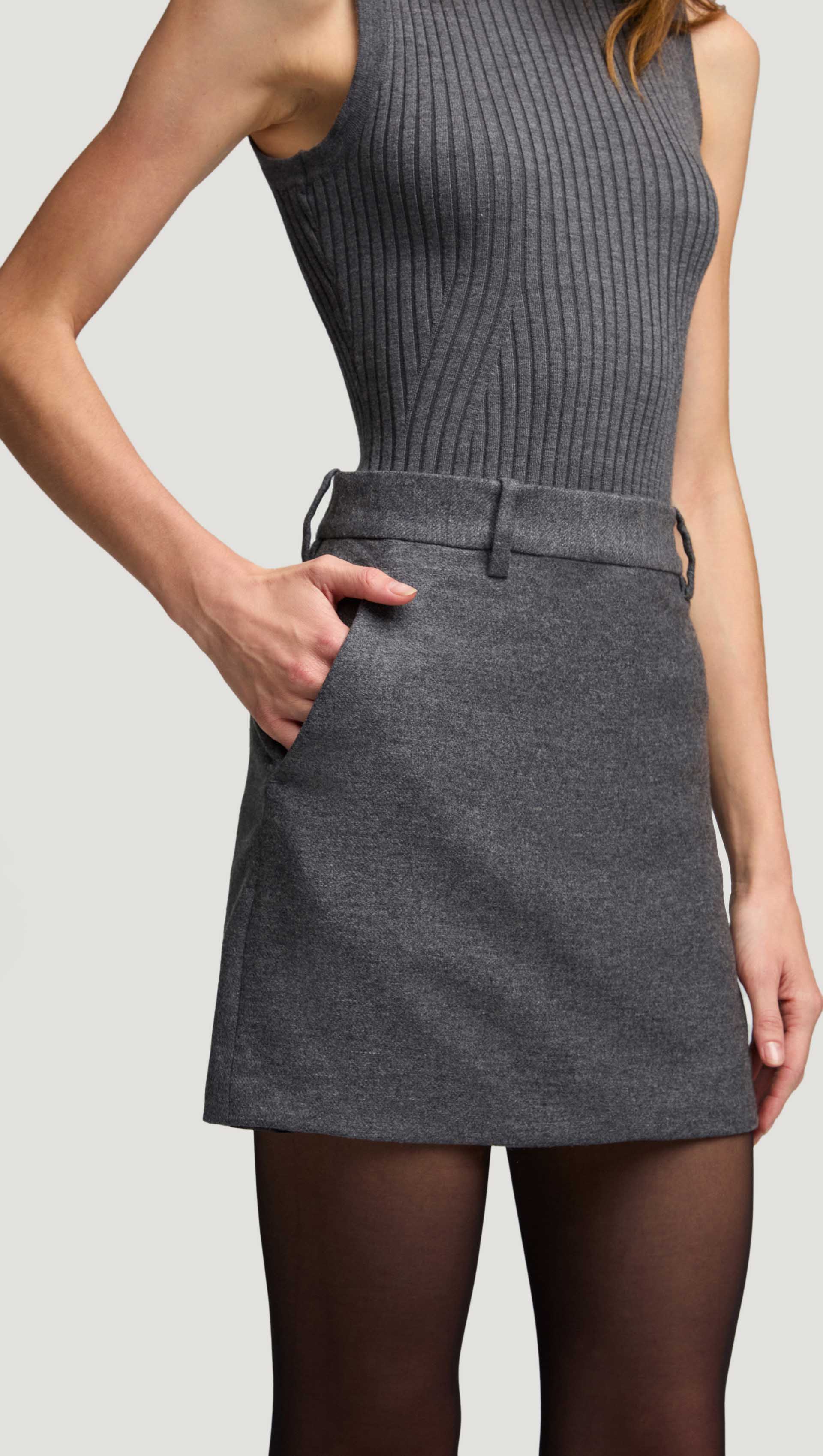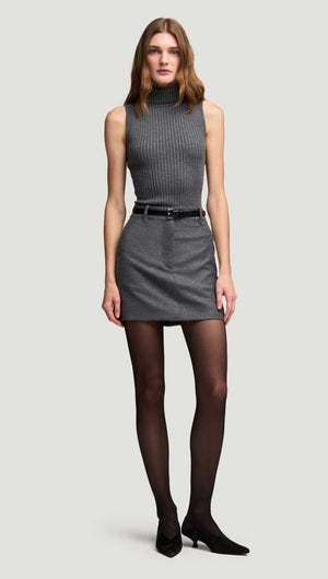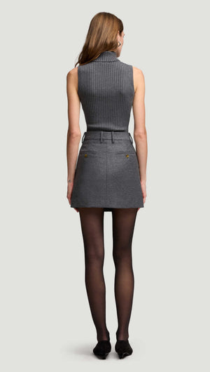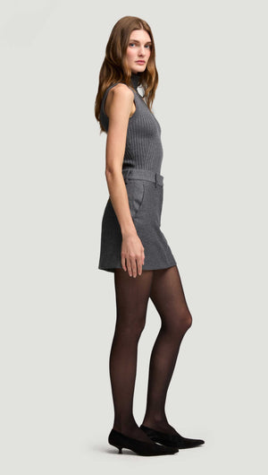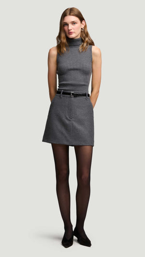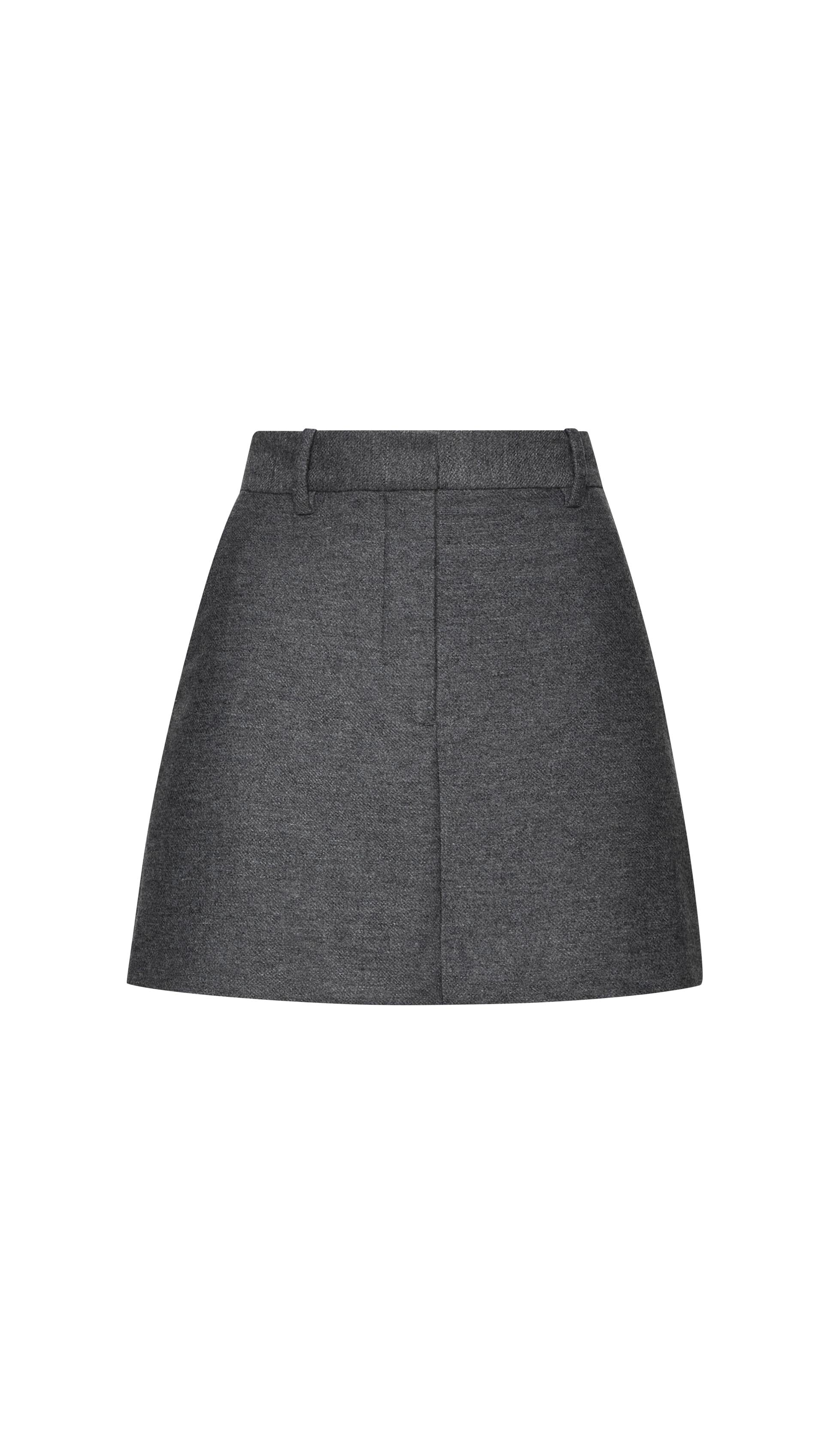 Mini Tailored Skirt in Textured Wool | Grey Melange