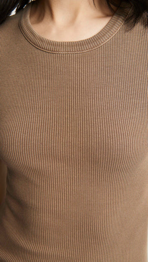 Meet the Nello Tee—your go-to base for whatever the day demands. Designed in a plush, ultra-soft rib knit that moves with you, it balances structure with softness. A precise fit, clean neckline, and short sleeves make it a polished piece for layering or leading on its own.