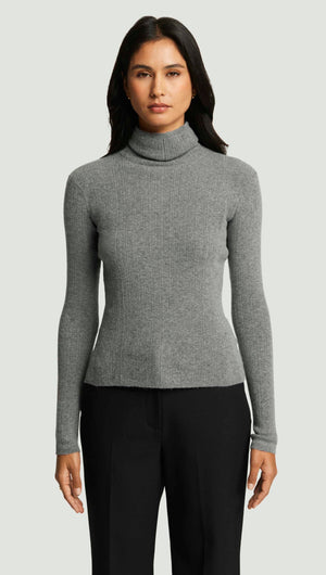 Rolled Neck Sweater in Nylon Wool | Heather Grey