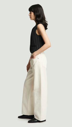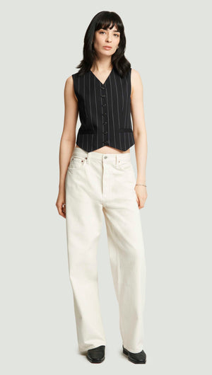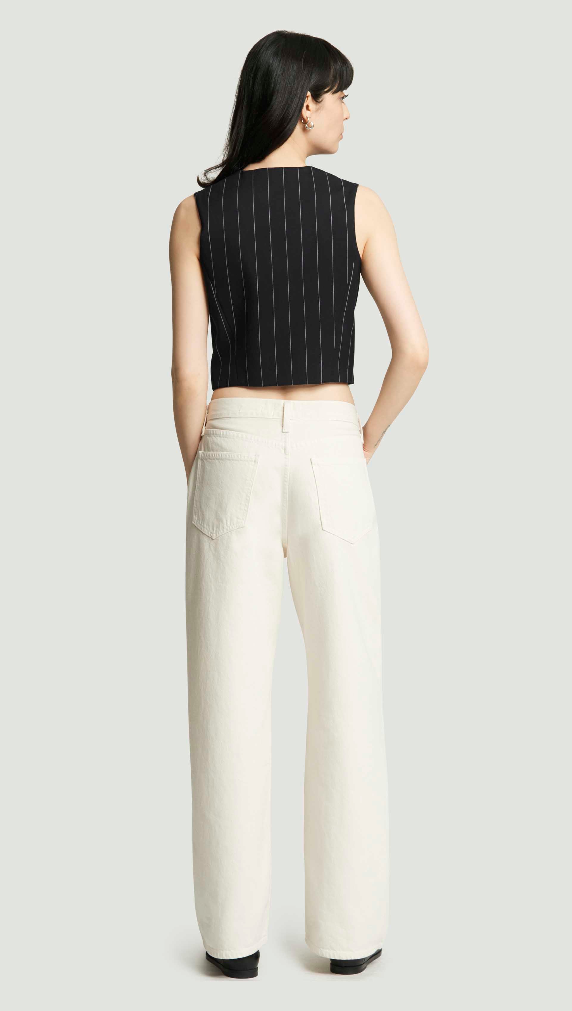 Your workwear, elevated. It starts with this classic waistcoat, designed to be worn as a top on its own or styled over a shirt or blouse. Made from stretch wool, it features a fitted v-neck silhouette, button closures, and mixes effortlessly with relaxed trousers or your daily denim.