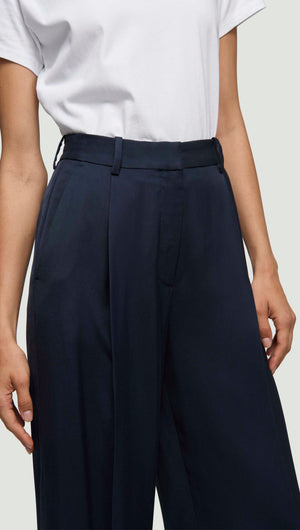Our slouchy Single Pleat Trouser is a timeless piece that finds balance in touting both a wide leg and a slim fit. The pant borrows from traditional suiting with a curtained waistband — which sits at the natural waistline for a flattering appearance — alongside pleated detailing.