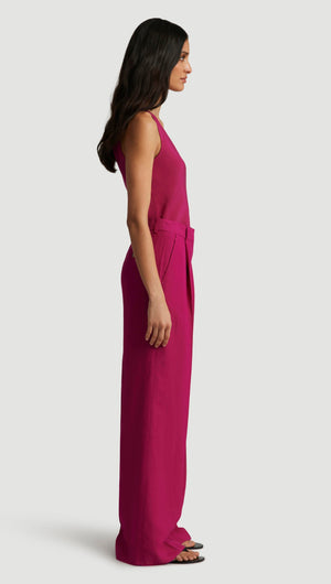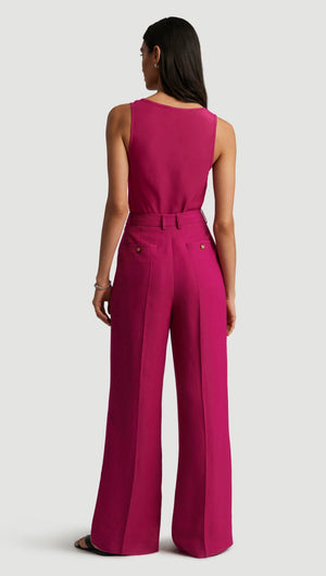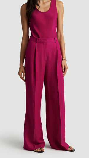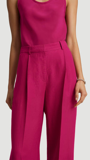 Single Pleat Trouser in Viscose Linen Twill | Fuchsia