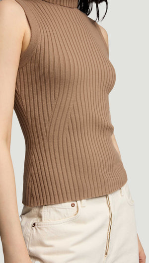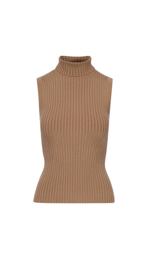 Sleeveless Turtleneck in Stretch Wool | Camel