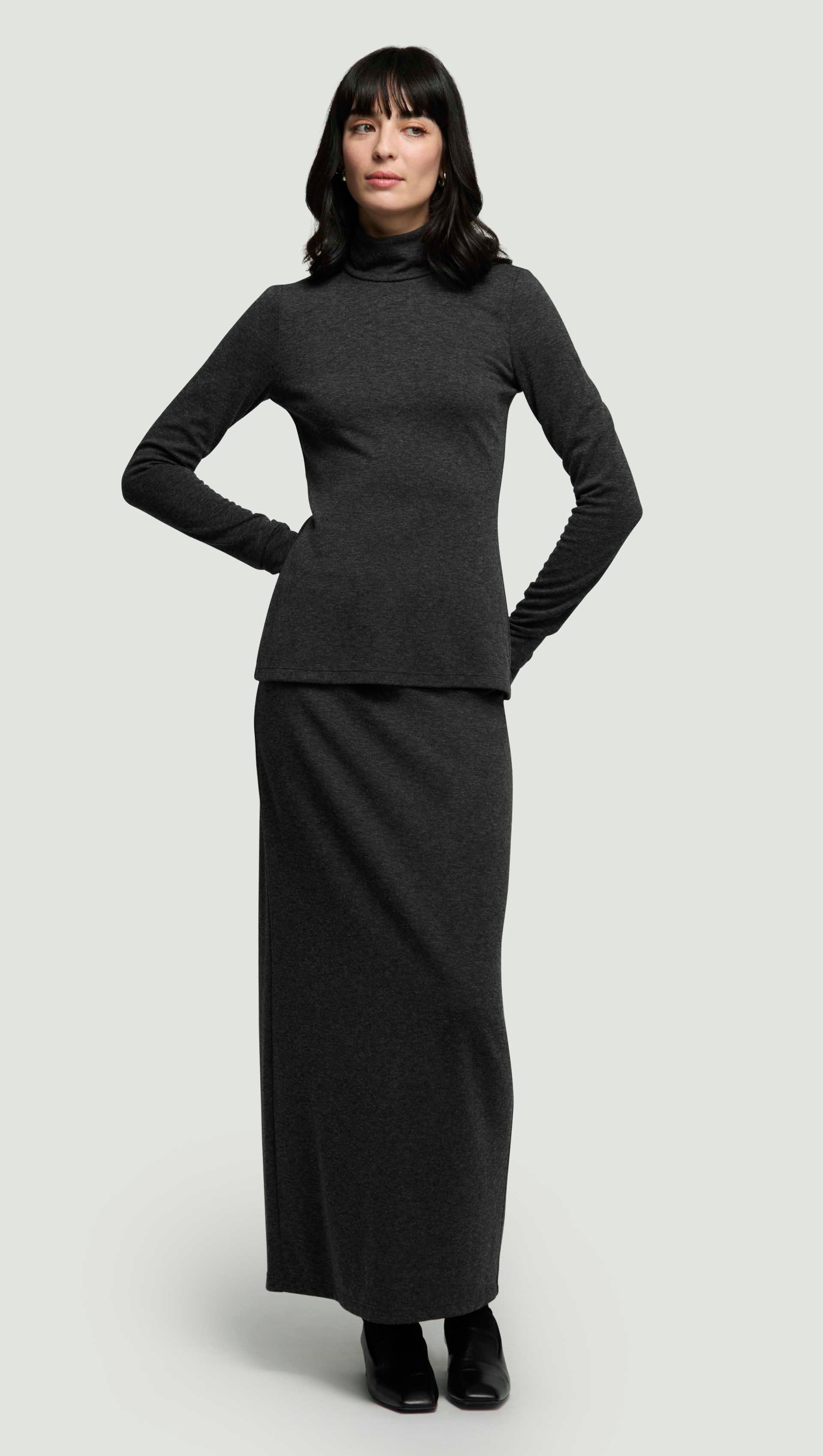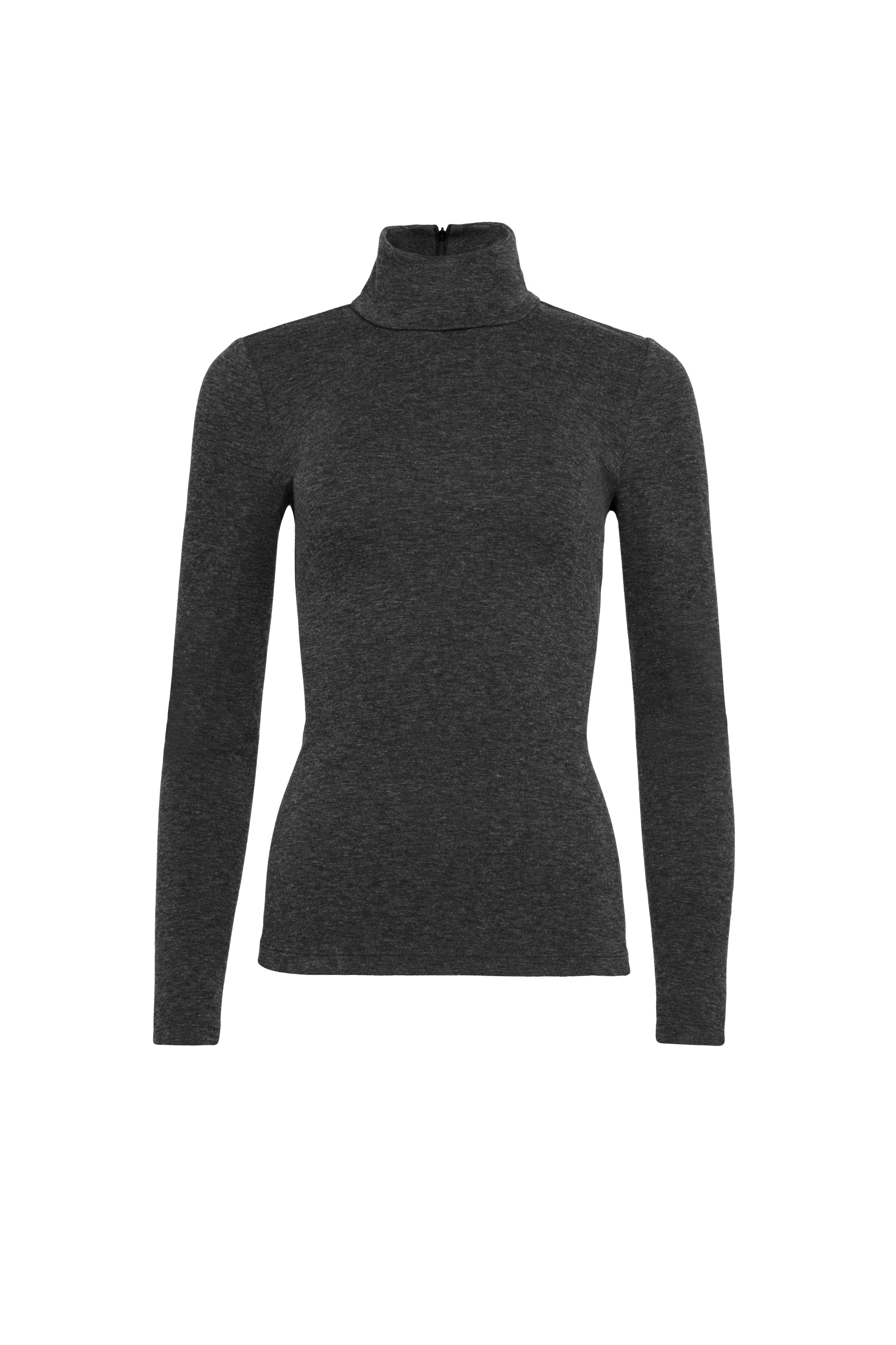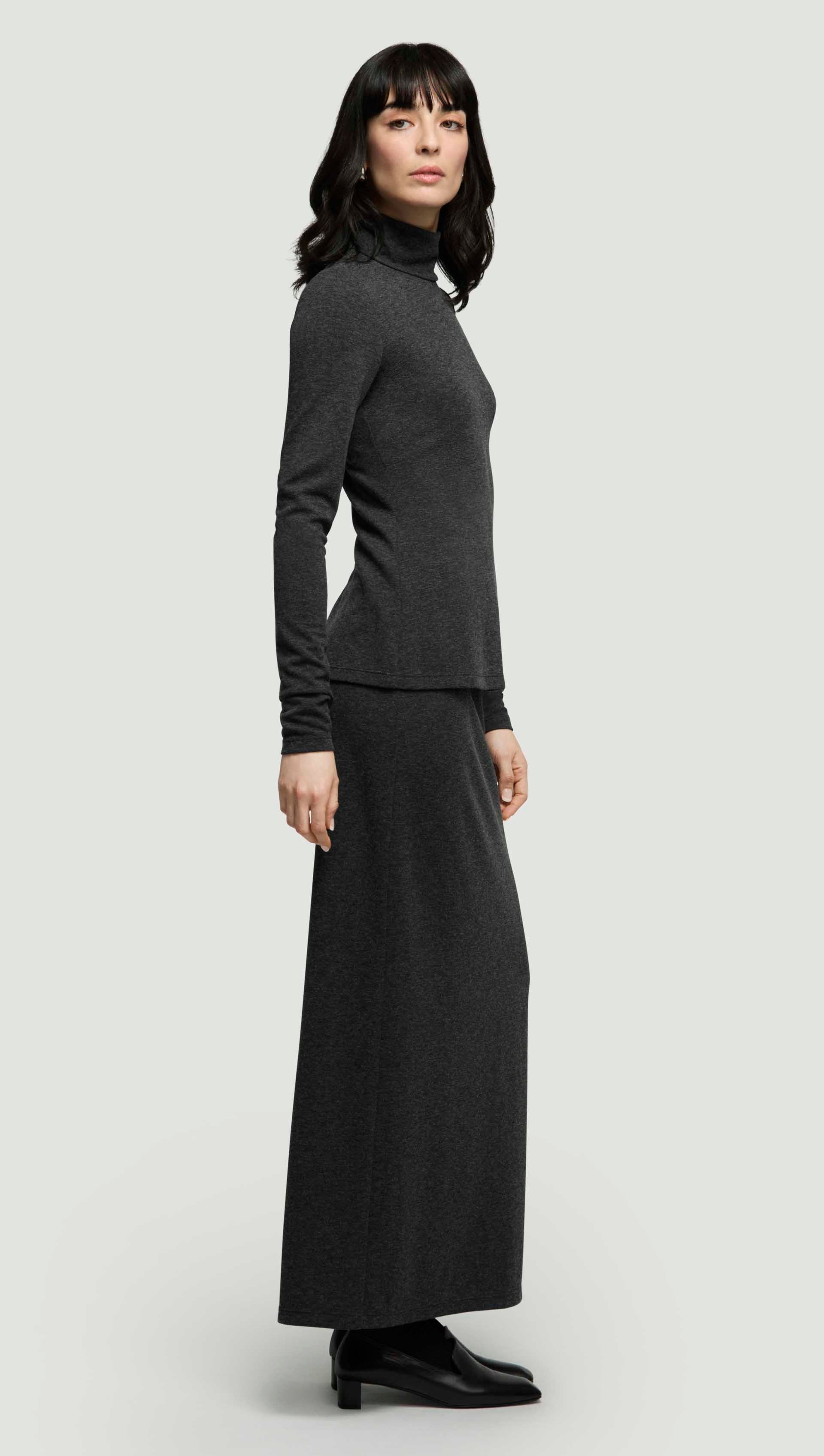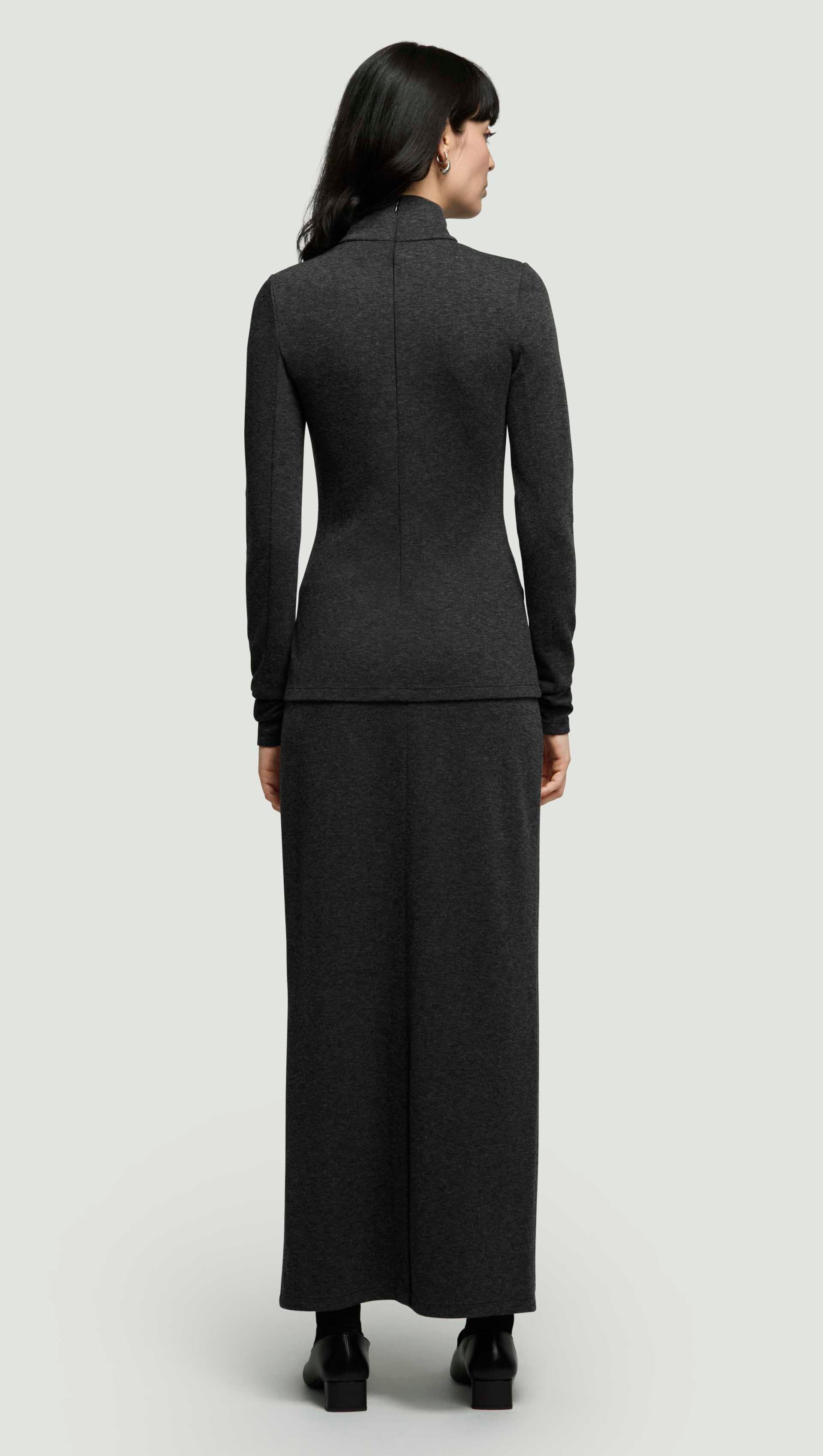 Skinny Turtleneck in Wool Jersey | Dark Grey Melange