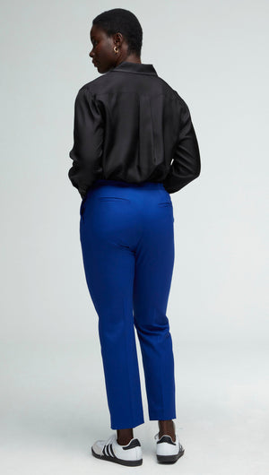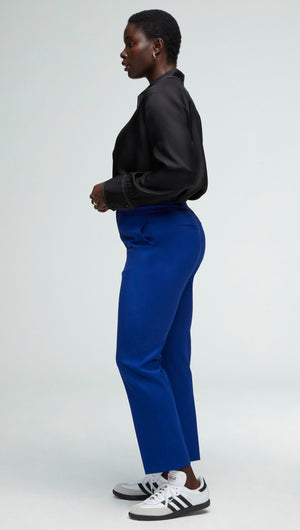 Made of a year-round, refined Italian stretch wool, this slim fitting trouser features a contoured waistband and an ankle length inseam. The lightweight fabric is naturally temperature regulating and odor and wrinkle resistant. Functional details include a hidden exterior credit card pocket, front side pockets and back welt pockets. Pairs well with the Single Button Blazer in Seasonless Wool.