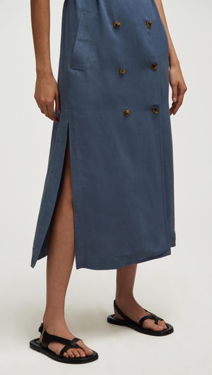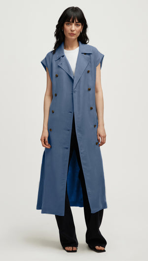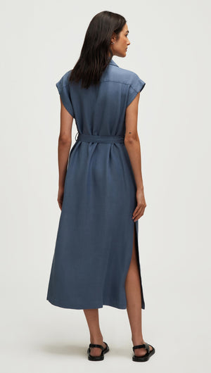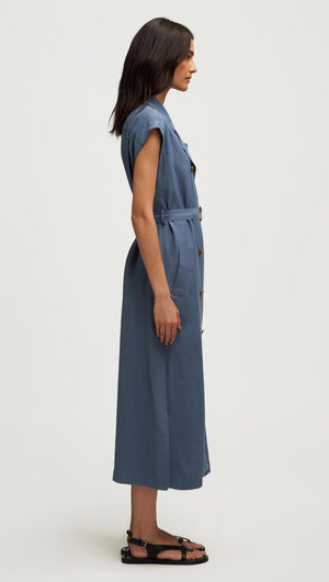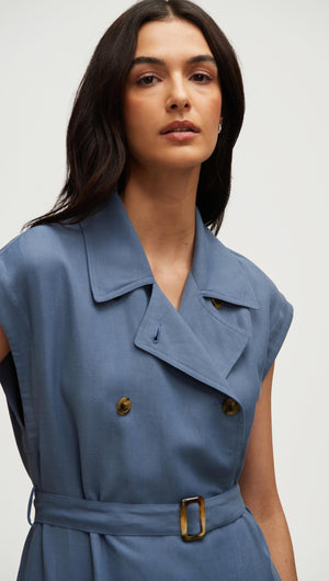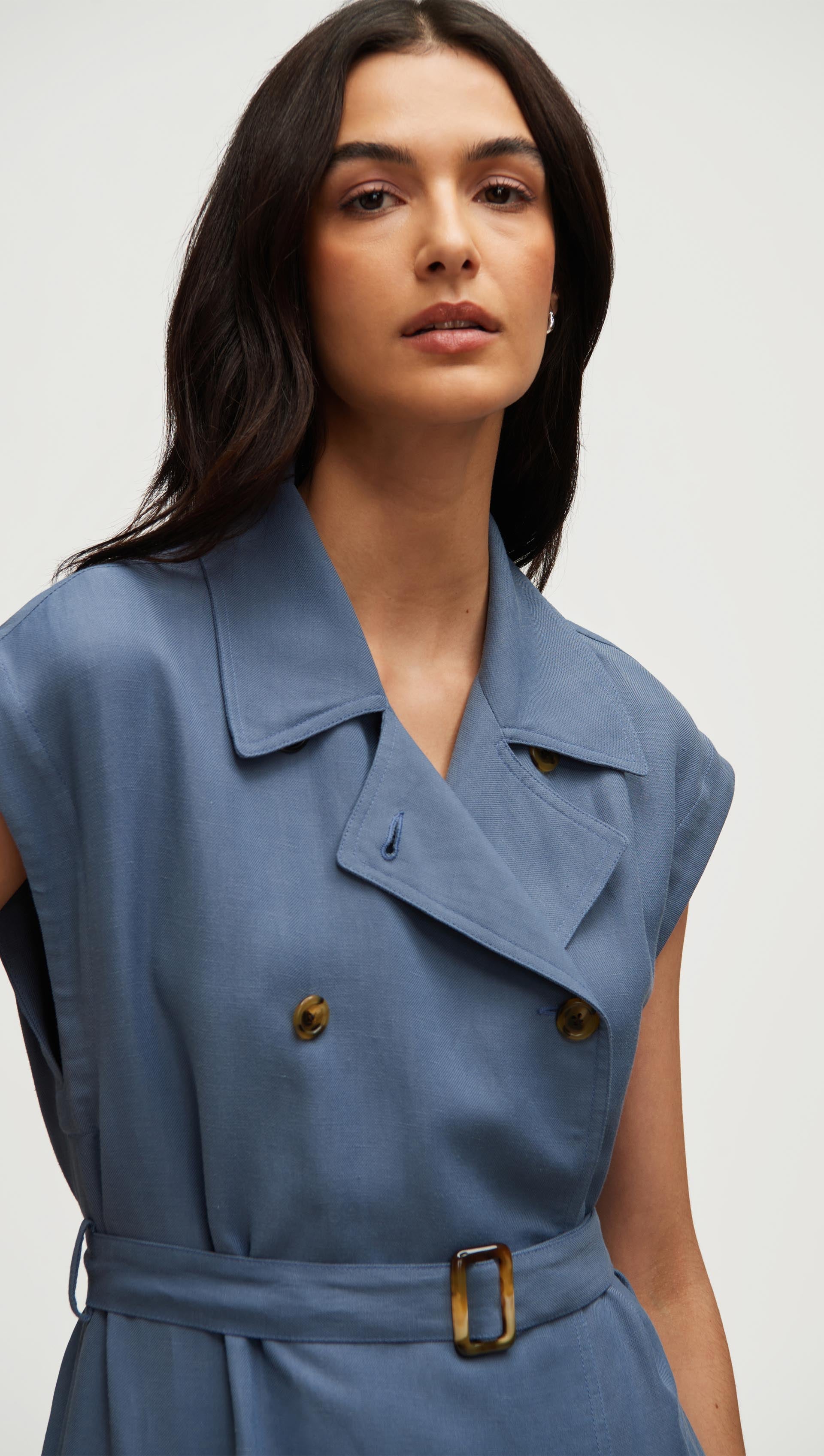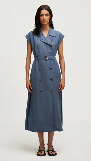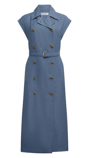 Trench Dress in Viscose Linen Twill | Powder Blue