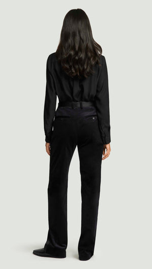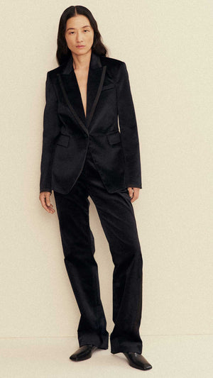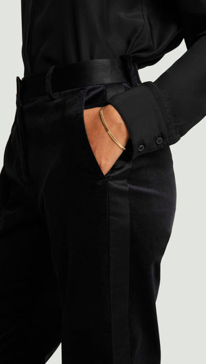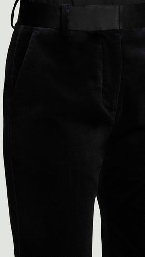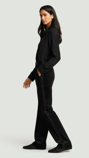 Tuxedo Trouser in Velvet w/Satin Detail | Black