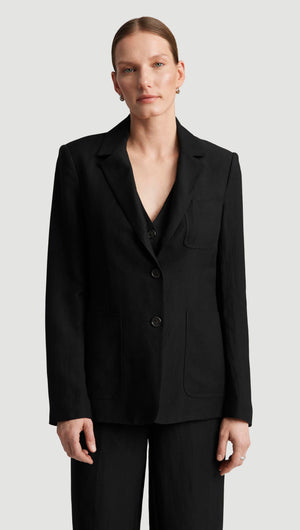 Unlined Weekend Blazer in Viscose Linen Twill | Black