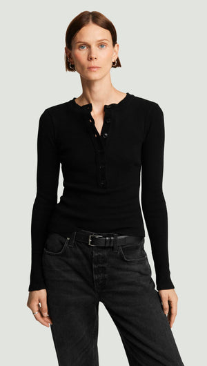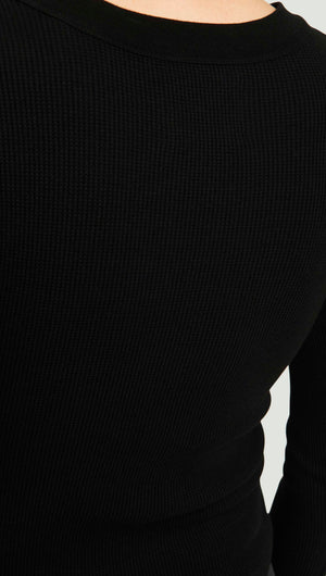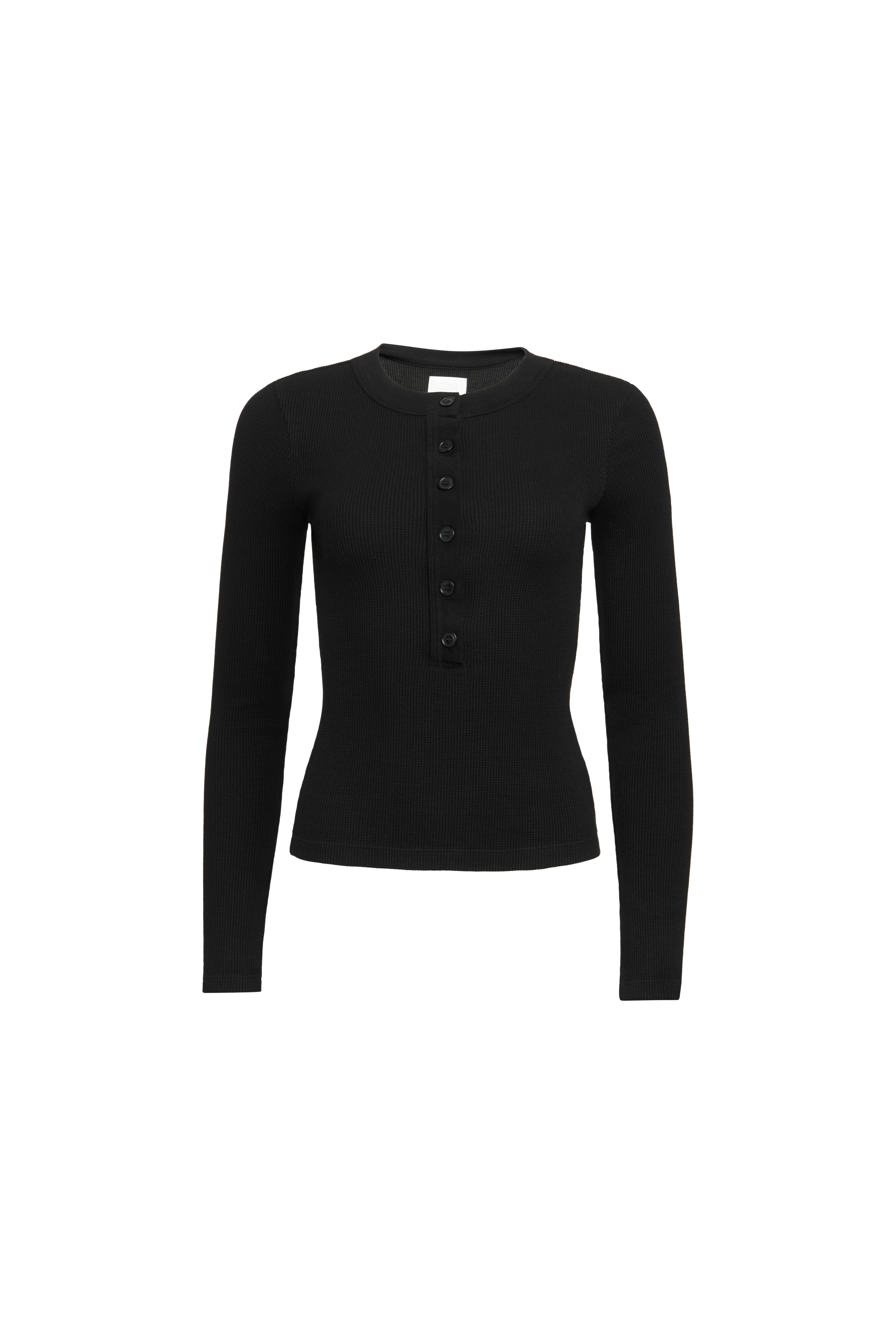 Varra Henley in Waffle Knit | Black