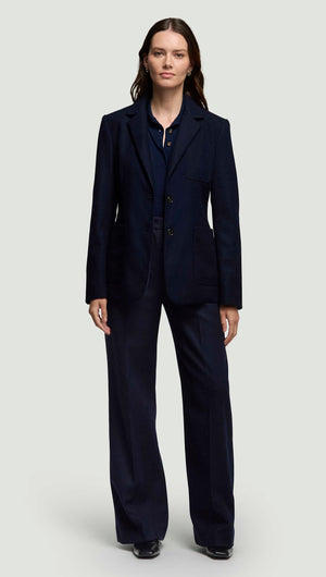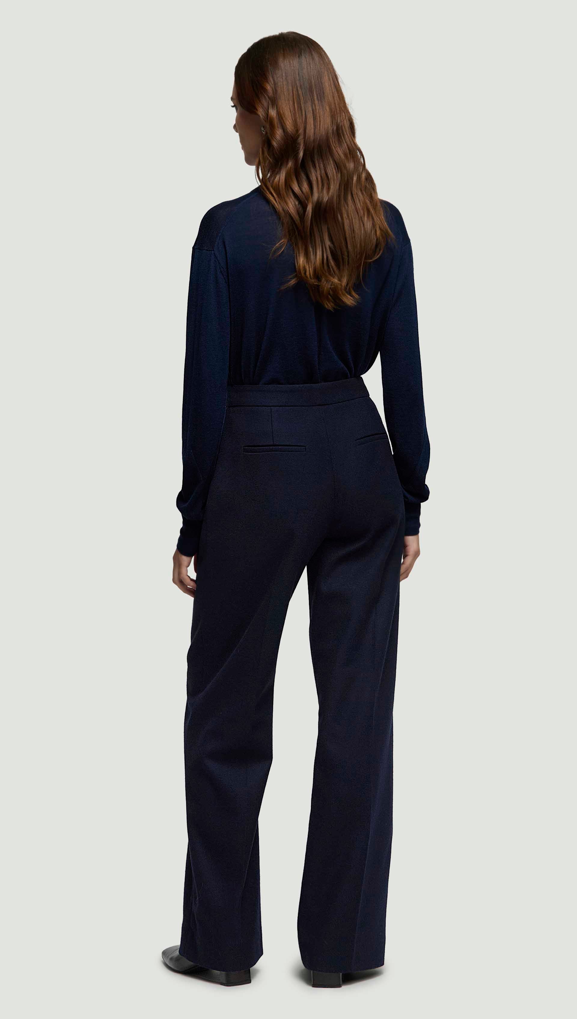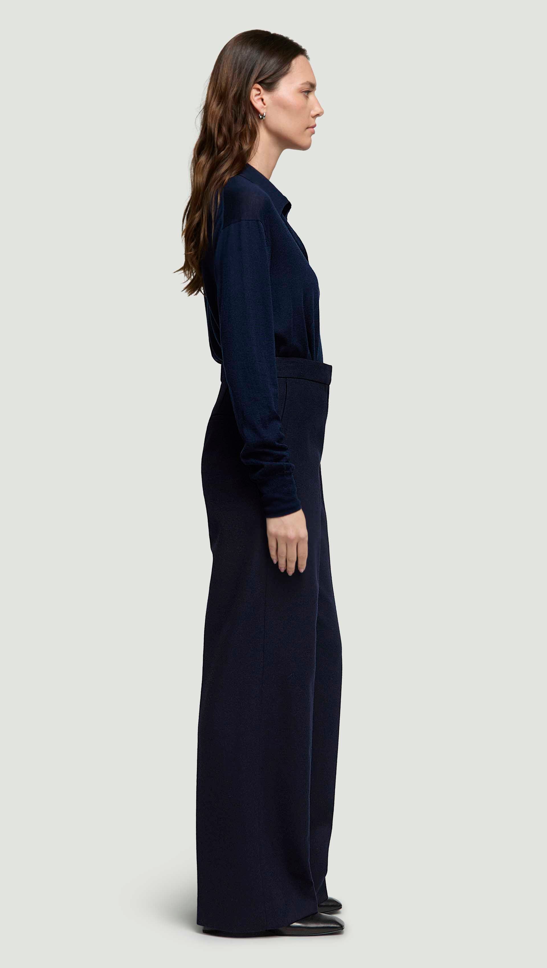 Wide Leg Trouser in Double-Faced Wool | Navy