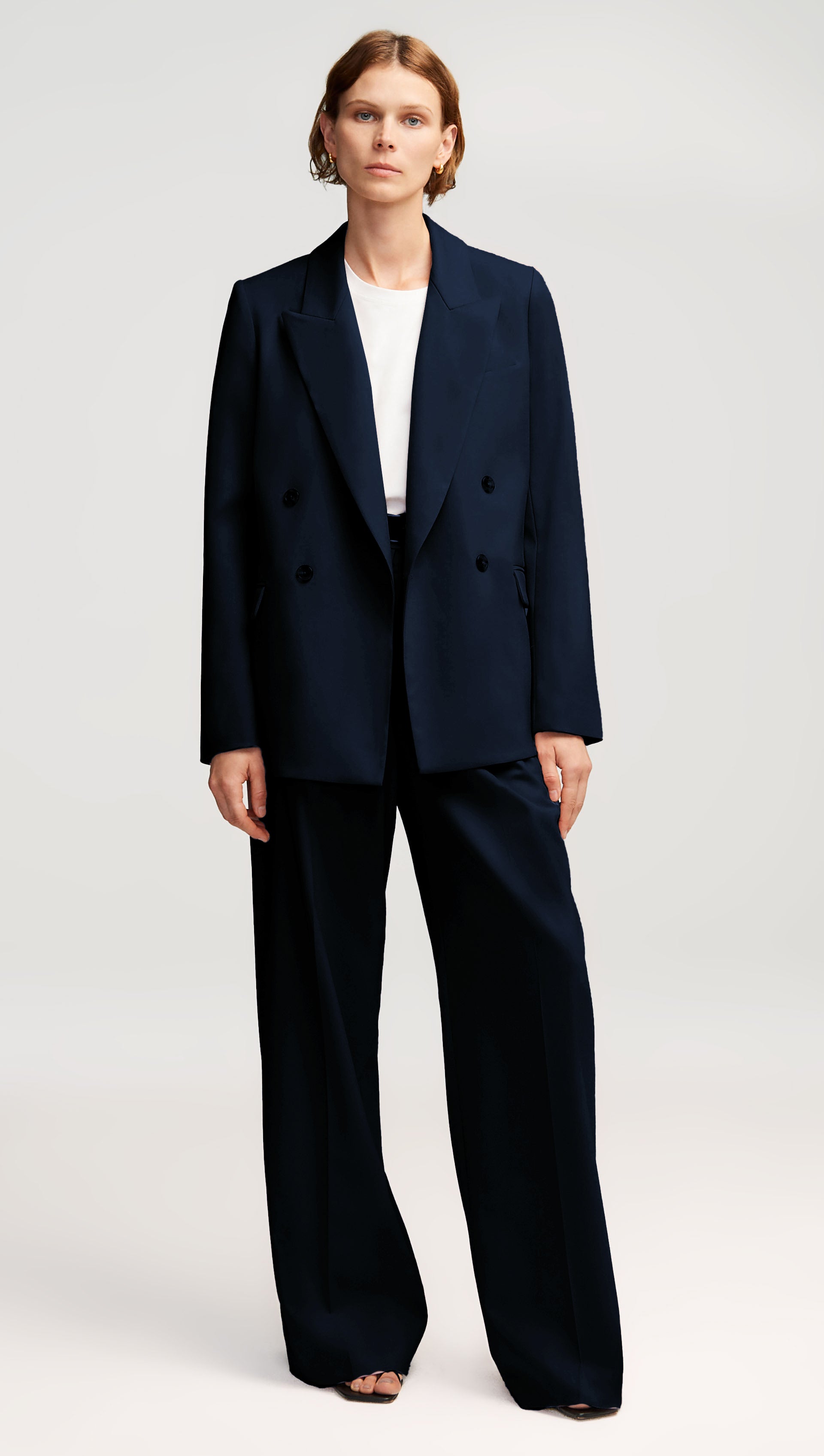 Wide Leg Trouser in Seasonless Wool | Midnight