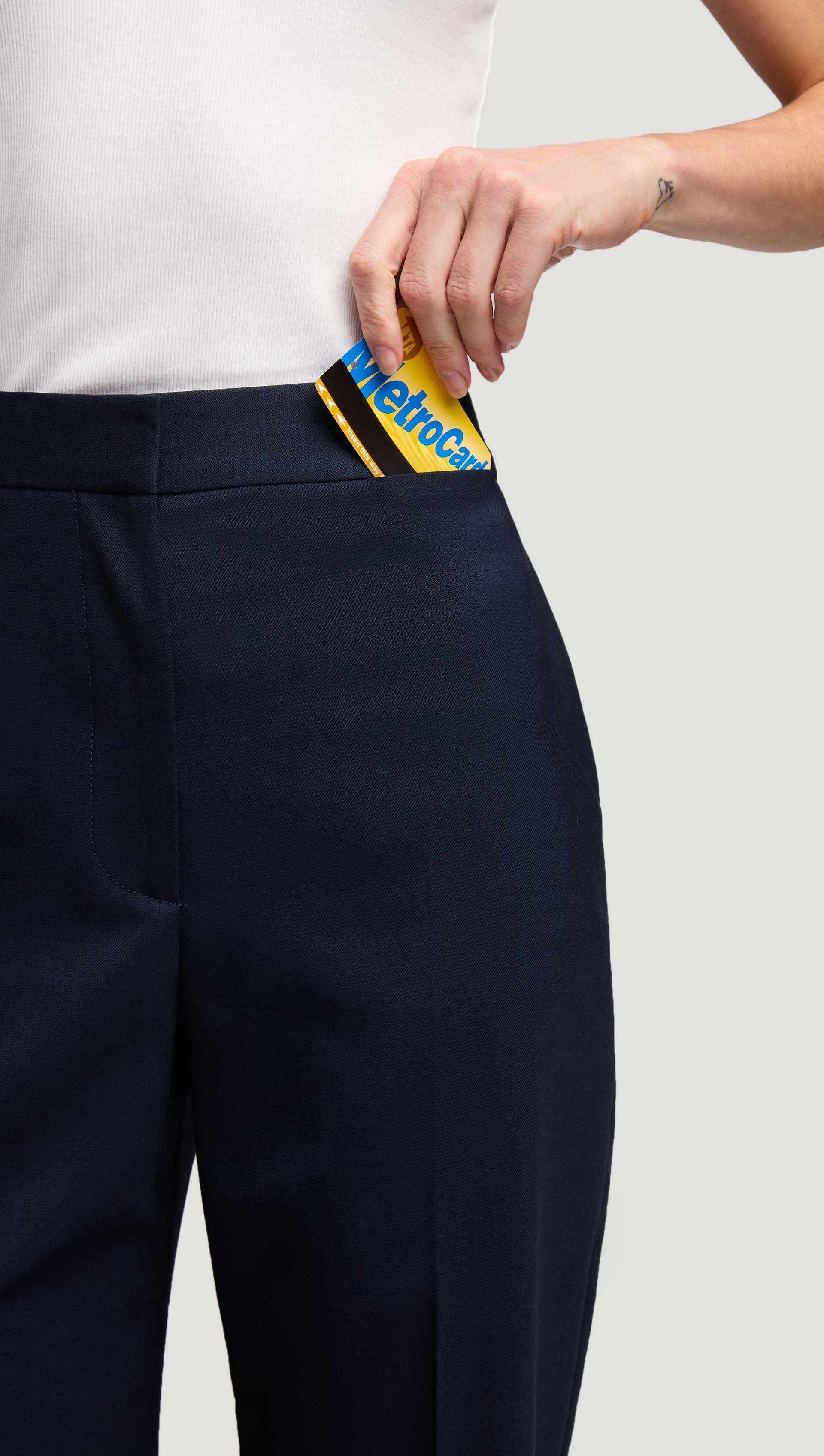Made of a year-round, refined Italian Seasonless Wool, this flattering silhouette features a high waist and a subtle wide leg. The lightweight fabric is naturally temperature regulating and odor and wrinkle resistant. Functional details include an exterior credit card pocket, front side pockets and back welt pockets. Style with heels or sneakers; we recommend hemming according to your preferred shoe choice. Pairs well with the Single Button Blazer in Seasonless Wool.