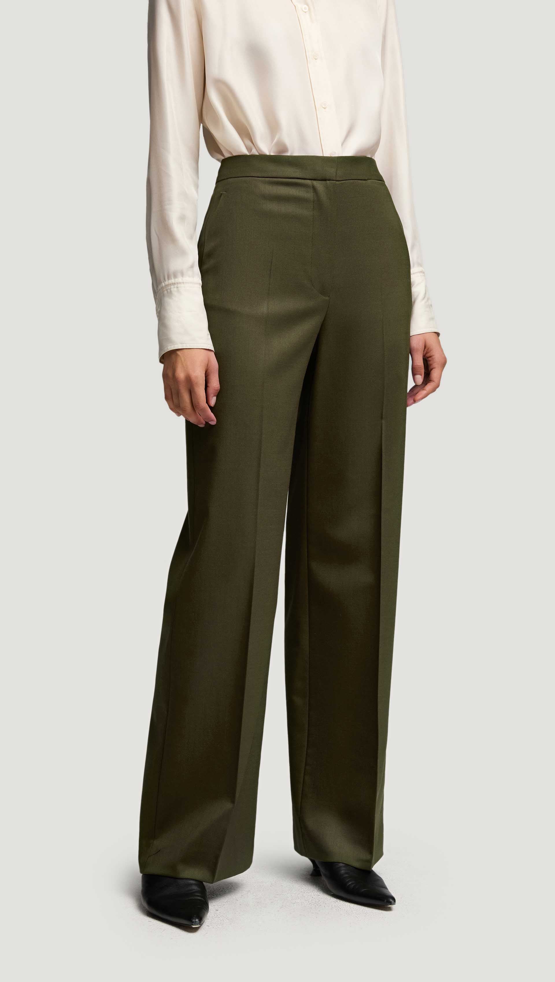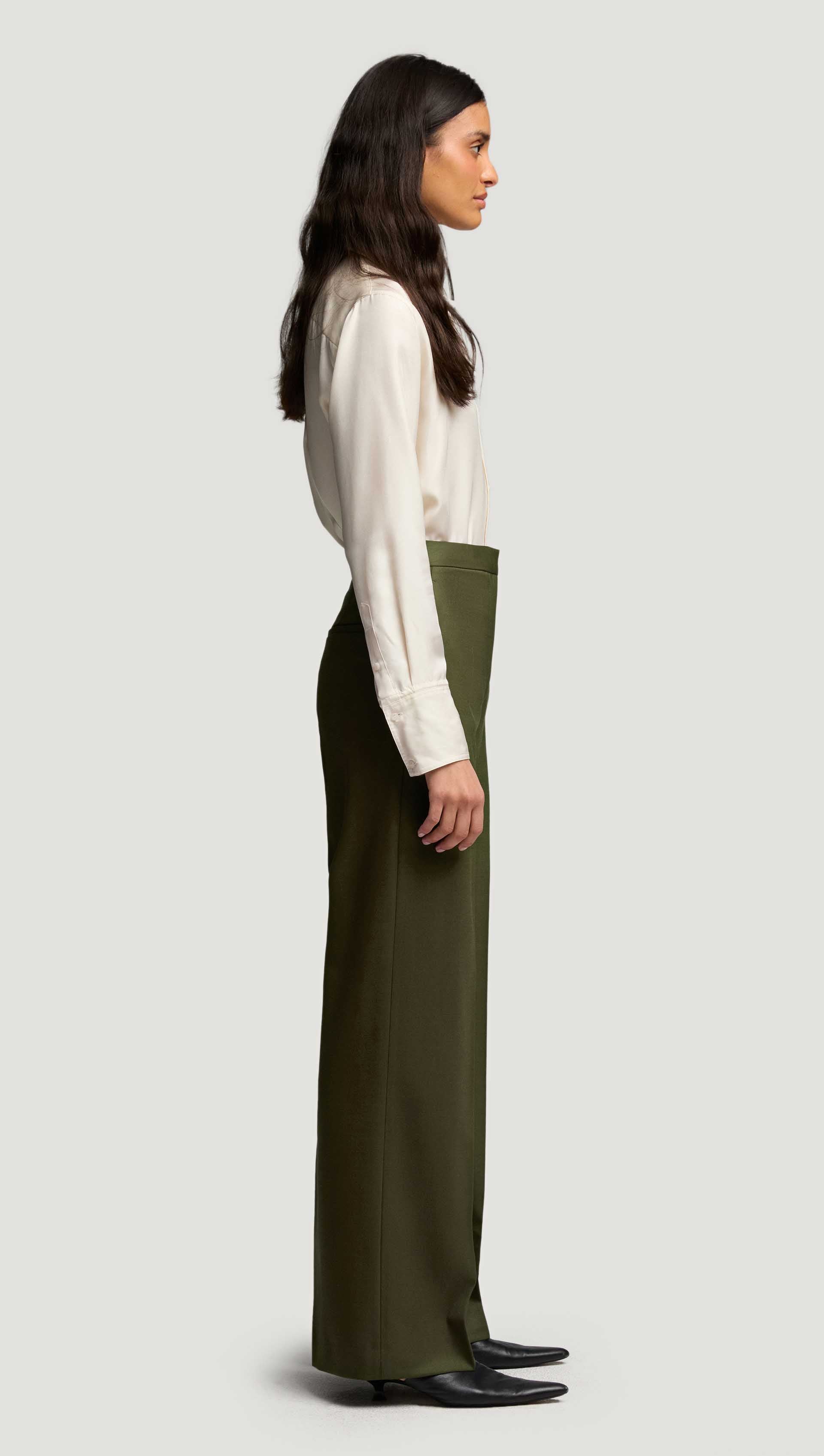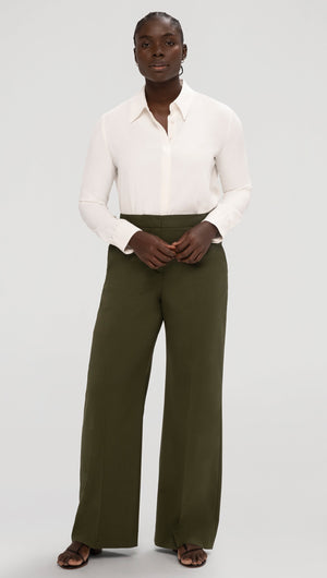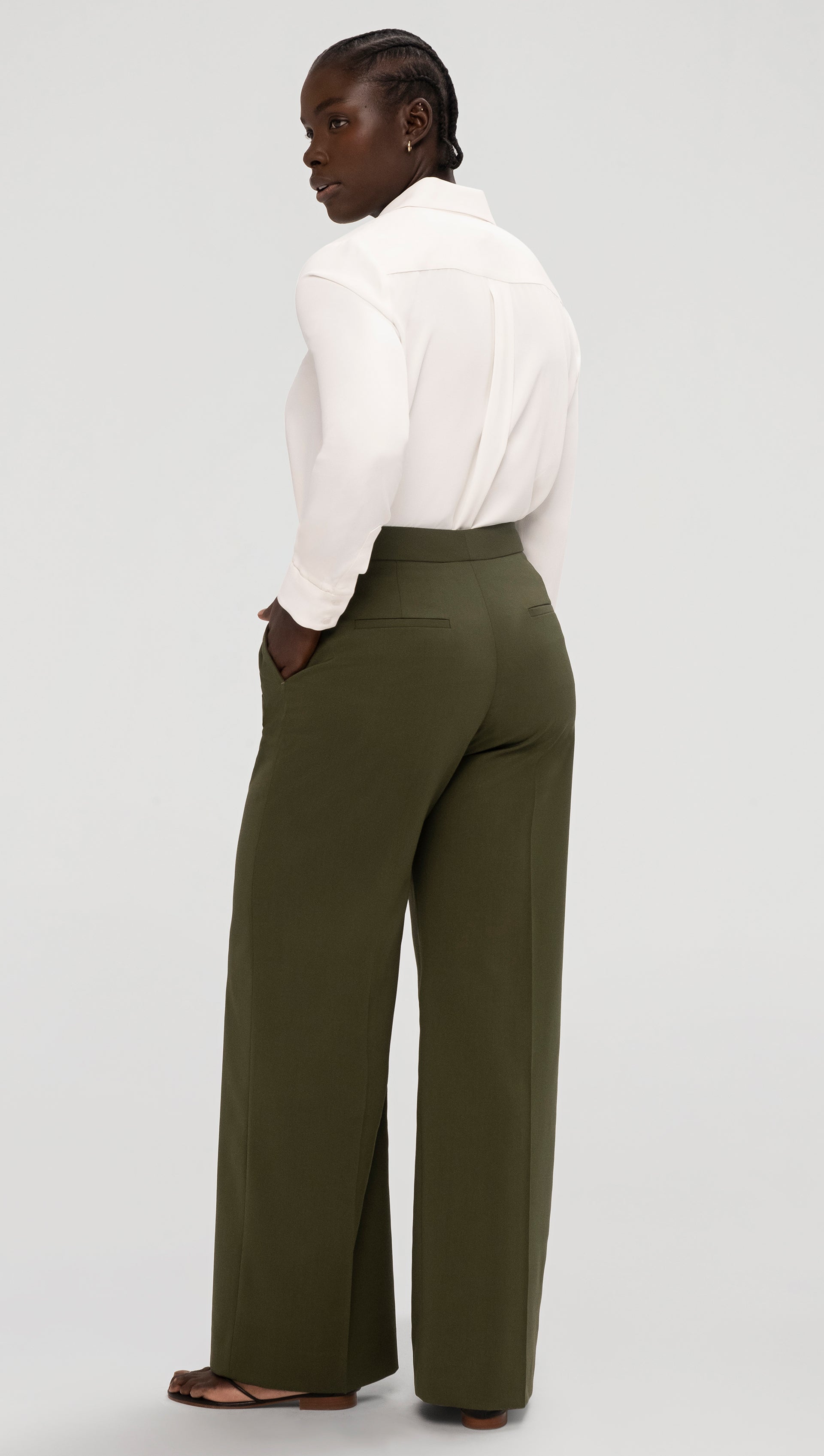 Made of a year-round, refined Italian stretch wool, this flattering silhouette features a high waist and a subtle wide leg. The lightweight fabric is naturally temperature regulating and odor and wrinkle resistant. Functional details include an exterior credit card pocket, front side pockets and back welt pockets. Style with heels or sneakers; we recommend hemming according to your preferred shoe choice. Pairs well with the Single Button Blazer in Seasonless Wool.