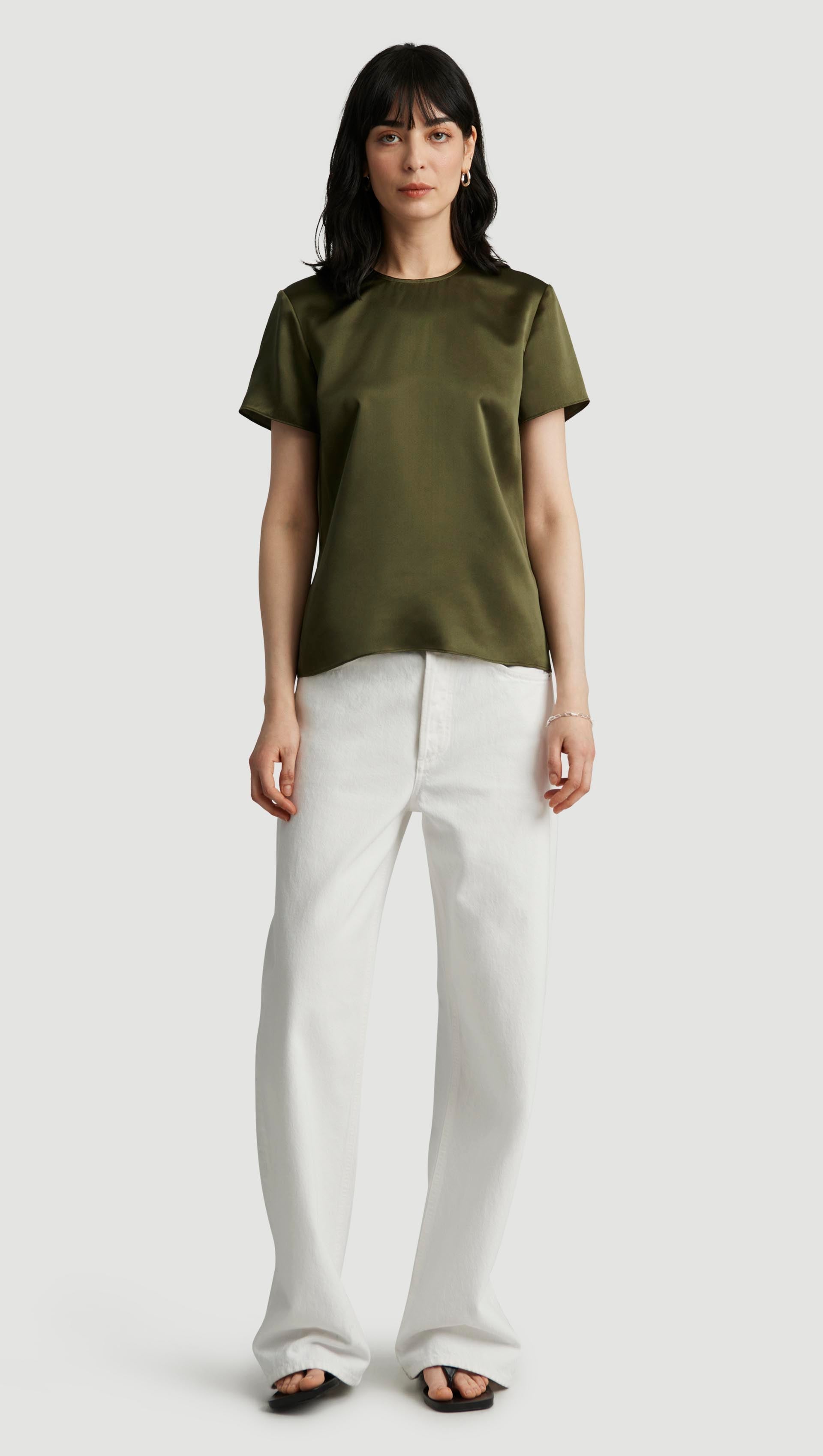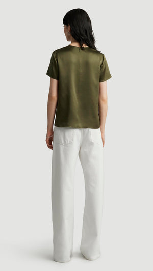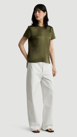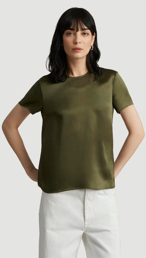 Woven Top in Silk Charmeuse | Pine Needle