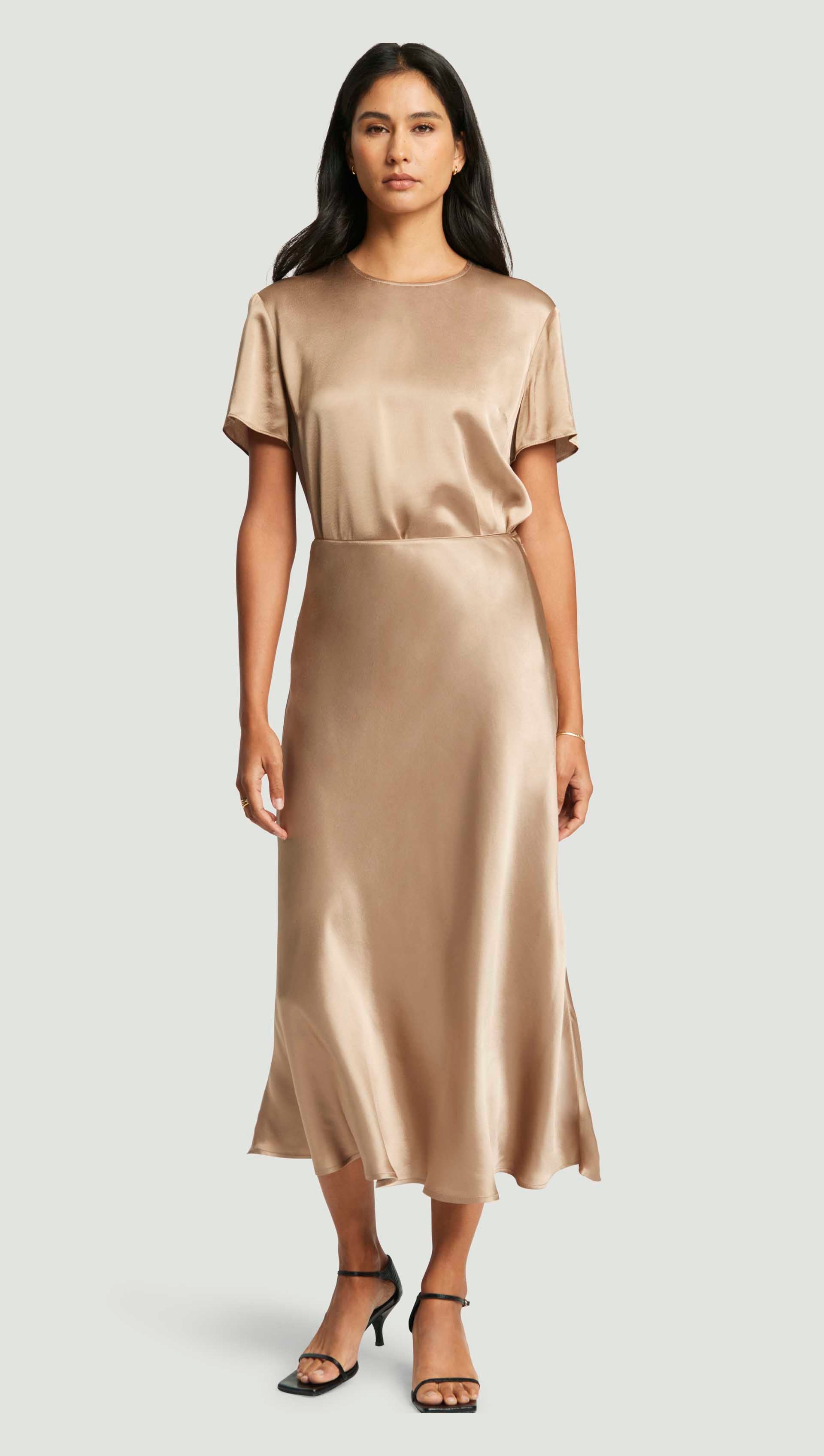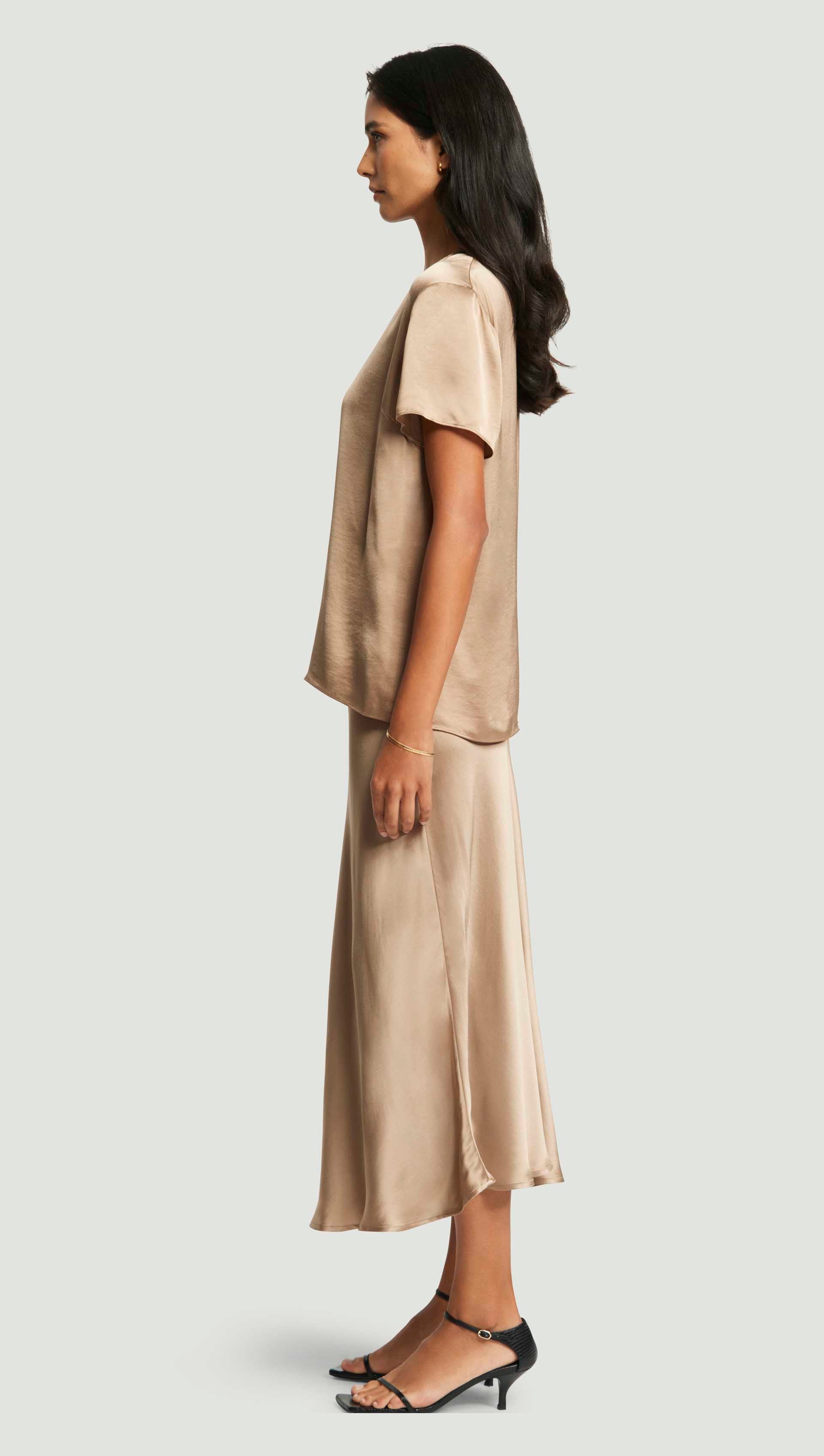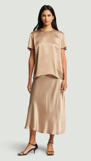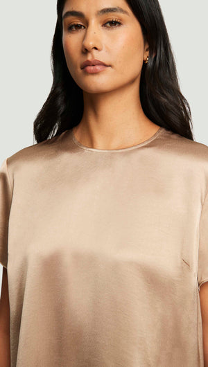 Woven Top in Viscose Satin | Taupe